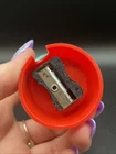 Vintage Globe Pencil Sharpener Tin Litho Made by A&W Products USA. Condition is Used. Shipped with USPS Ground Advantage.