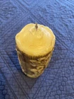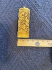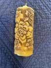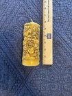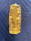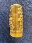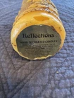 Add a touch of vintage elegance to any room with this beautiful handcrafted pillar candle by Reflections. Made in Hong Kong, this late 20th-century piece features intricate floral designs in a stunning gold color. Perfect for all occasions, this candle is sure to create a warm and inviting atmosphere in any space. Unused/Never Lit/Like New Care instructions are simple, just clean with a damp cloth and this original piece will continue to bring joy for years to come. Whether you're a collector of decorative candles or simply looking for a unique addition to your home decor, this vintage pillar candle is a must-have.