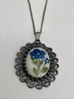 Vintage Hand Painted Purple Flowers Violet's On Porcelain Pendant Necklace Check pictures to judge condition no returns Message me with any questions thanks