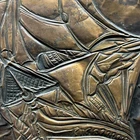 This vintage copper art piece features a beautifully detailed hammered and engraved etched design of a sailing ship. The intricate details of the ship's hull, sails, and crew make it a true masterpiece. Crafted from high-quality copper, this piece is sure to last for years to come. The unique hammered and engraved etched design of this piece makes it a one-of-a-kind addition to any collection. Whether you're a collector of metalware or just appreciate the beauty of vintage art, this piece is sure to impress. Add it to your collection today and enjoy the intricate details of this stunning sailing ship.