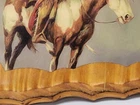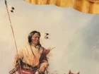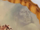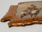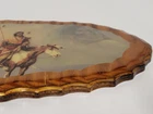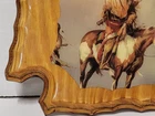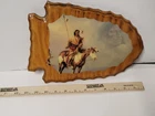 Vintage Handcrafted In AZ Native American Warrior On Horse Arrowhead Shaped Wood Plaque or Picture with Hanger. 12" L, 8.5" ht, 3/4" D, 1# Wt. Excellent condition with No damage. Glossy Finish.
