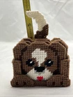 Vintage Handmade Needlepoint Puppy Dog Coaster Set of 4 with Holder for Dog Lovers