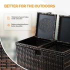 Introductions: Keep your outdoor and indoor spaces clean and stylish with our 72-gallon large wicker trash bins. Designed for durability and functionality, this trash can features a dual-lid design to separate and organize waste, making it perfect for managing trash at parties or daily use. Its UV-resistant PE rattan and sturdy steel frame ensure long-lasting performance in all weather conditions. With thoughtful details like adjustable feet, easy-to-replace trash bags, and a modern wicker texture, this trash bin seamlessly combines practicality and elegance for any porch, patio, backyard, or commercial space. Features: 1. Massive 72-Gallon Capacity with Dual Lids: Keep your trash organized with dual compartments, perfect for separating recyclables from waste or managing large amounts of trash effortlessly. Ideal for gatherings, parties, or everyday use. 2. Durable Construction for All-Weather Use: Made from UV-resistant PE rattan and a sturdy steel frame, this trash bin resists fading, rust, and wear, ensuring long-lasting use both indoors and outdoors. 3. Convenient Design: A cutout under the lid makes trash bag replacement quick and simple. Each lid is equipped with lift handles for easy access, while adjustable feet ensure stability on uneven surfaces. 4. Elegant and Modern Design: Featuring a textured wicker surface and sleek, polished look, this trash bin seamlessly blends functionality with aesthetic appeal, making it a perfect addition to any outdoor or indoor space. 5. Versatile Indoor and Outdoor Use: Whether it's for your patio, porch, backyard, or even your kitchen, this dual-lid trash bin is a practical solution for keeping your spaces clean and organized while enhancing the décor. Specifications: 1. Dimensions: (30.7 x 16.1 x 33.9) in / (78 x 41 x 86) cm 2. Interior Bin Dimensions: (28.7 x 14.2 x 29.9) in / (73 x 36 x 76) cm 3. Iron Ring Dimensions: (14 x 14 x 0.8) in / (35.5 x 35.5 x 2) cm 4. Lid Dimensions: (13.6 x 14.4 x 0.8) in / (34.5 x 36.5 x 2) cm 5. Hole Dimensions: (3.1 x 2.8) in / (8 x 7) cm 6. Material: PE Rattan, Steel 7. Net Weight: 26.9 lbs / 12.2 kg Package Includes: 1 x Wicker Trash Bin Please Note: Communication is the best way to solve the problem.Your satisfaction is our top priority. We appreciate your positive feedback! We have always been committed to providing the best service and reliable products to every customer. However, accidents may occur at times, and we understand your concerns and setbacks. Please contact us to resolve the issue before leaving negative feedback. We will reply to you as soon as possible. If there is no response within 24 hours, please check the email in your email. Our goal is to provide first-class customer service, so we usually do our best to solve any problems! (Note: Weekend Information Will Be Replied on the Next Working Day)