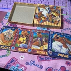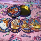 Includes 2 sets of 4 coasters each. Circle tin has a lot of scratching on the outside, and box has a spot of wear right on the front. But coasters are in great condition!
