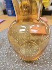 Measures 6.25" Tall x 5.25" Wide The Vintage Lancaster Glass Marigold Candy Dish with Lid features a rare and stunning design with a clear glass pedestal base, showcasing the brand's craftsmanship and originality. Made in the United States, this mid-century modern piece exudes a touch of retro glamour with its vibrant gold color. Perfect for collectors or those looking to add a unique decorative touch to their space, this Lancaster glass item is sure to be a standout piece in any display.