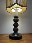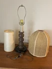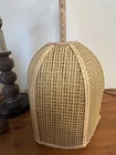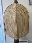 Beautiful Vintage MCM Rattan Wicker & Fiberglass Double Drum Table Lamp Light 25”H Retro Nice vintage condition- refer to pics Light bulb not included May ship in 2 boxes not to damage lampshades