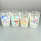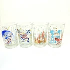 Vintage from the 1990s A really fun set of glassware for anyone that loves Disney! This glass tumbler set was a McDonald’s promotion during 1996 to celebrate Disney World’s 25th anniversary. This is a complete set of 4, never used. New! with no chips or cracks. They are heavy glass 16 oz. tumblers. Each glass has beautiful, pristine full-color Disney graphics – a different scene on each glass tumbler. Around the base rim of each glass is embossing reading: "Remember the Magic of Walt Disney World”. The bottom center is embossed with a “25” in the center of a pumpkin carriage outline set in front of the Disney Castle outline. A Very Nicely done set of Disney commemorative glassware! The embossing is detailed and beautiful, as are the colorful graphics on each glass. A 'must have' for the collector of all things Disney!! Approximate Measurements: 5" tall 3-1/4" diameter 16 oz. Blessings!!