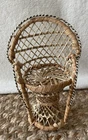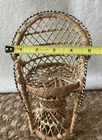 This vintage wicker peacock chair plant stand is the perfect addition to any indoor or outdoor space. The charming brown color and boho theme make it a great fit for any decor style. Measuring at 8 inches in height and 5 inches in width, this medium-sized plant holder is perfect for displaying your favorite small potted plants. The wicker material adds a classic touch and the care instructions are simple - clean with a damp cloth. This plant stand is great for any occasion and is perfect for adding a touch of summer to your home or garden. The doll size is ideal for smaller plants and will make a great addition to any collection. Thanks for looking! :)