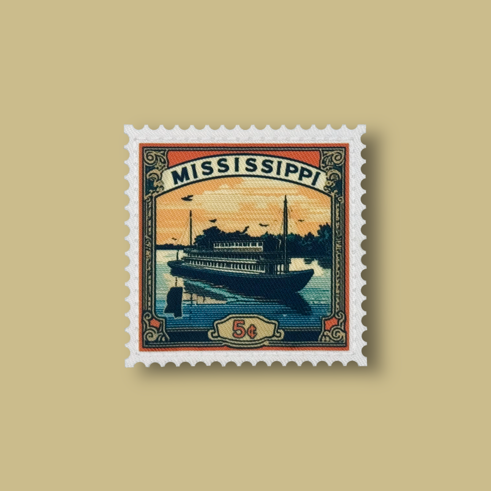 Vintage State Postage Stamp Patch | Mississippi High quality iron-on or sew-on patch Great for backpacks, bags, jackets, and other clothing or apparel All items in stock and ship in 1 business day Free domestic shipping in the USA! Designed, digitized and embroidered in Lincoln, NE USA DESCRIPTION: Add a vintage touch to your collection with this state postage stamp patch from Mississippi. The patch features an embroidered design of a postage stamp and is suitable for iron-on application. It is perfect for accessories like bags and purses, as well as apparel items like jeans and jackets. The patch is made by Gravity Patch Co. in Lincoln, NE. This item is a must-have for stamp collectors and enthusiasts alike. APPROX. SIZE: 2 in x 2 in (55mm x 55mm) IRON-ON INSTRUCTIONS: 1. PRE-HEAT IRON using SILK SETTING (~300°F NO STEAM). 2. PLACE PATCH ON the garment AND cover with a piece of fabric or teflon sheet. 3. press iron onto patch with firm pressure (no movement) for 10 seconds. turn the garment inside out, if possible, and REPEAT on the reverse side for 10 seconds. 4. Let the garment and patch cool completely! If the patch is not affixed, repeat step 3 as necessary. We recommend sewing the patch onto your garment for better durability! QUESTIONS: If you have any questions for us please ask!