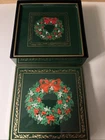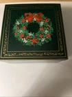 Add some vintage charm to your holiday gatherings with this set of six Otagiri lacquer plastic coasters, featuring a beautiful wreath pattern. The coasters are stackable, washable, and lightweight, making them both practical and stylish. The set comes with a case for easy storage and transport, and each coaster measures 4 inches in length and width, with a height of .25 inches. These coasters are an original production from Japan and are signed by the manufacturer. They are perfect for Christmas and the winter season and will also add a touch of elegance to any table setting. Don't miss out on this collectible set of coasters that are both functional and beautiful. Graphics are crisp