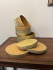 CONDITION: They are pre-owned but in good condition. It is slightly yellowish, but this could be due to age. So far, there have been no breaks or significant scratches. See attached photos Color: Beige, old gold tone, gray Style: Vintage Materials: Carboard Measurements: 9.1 in W, 8.5 in W, and 7.6 in W, approximately "All our items are sold as is." We are committed to providing you with the best customer experience and affordable prices. Thank you for supporting our small business and contributing to a better and cleaner world.