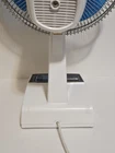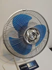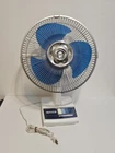 Vintage panasonic 5 way oscillation tabletop floor fan desk fan Vintage collectible With translucent blue blades Model f-1207 Adjustable Has metal carry handle Corded electric 3 speed hi medium and lo Oscillating head Quality tested fully working Excellent condition (see photos for details)