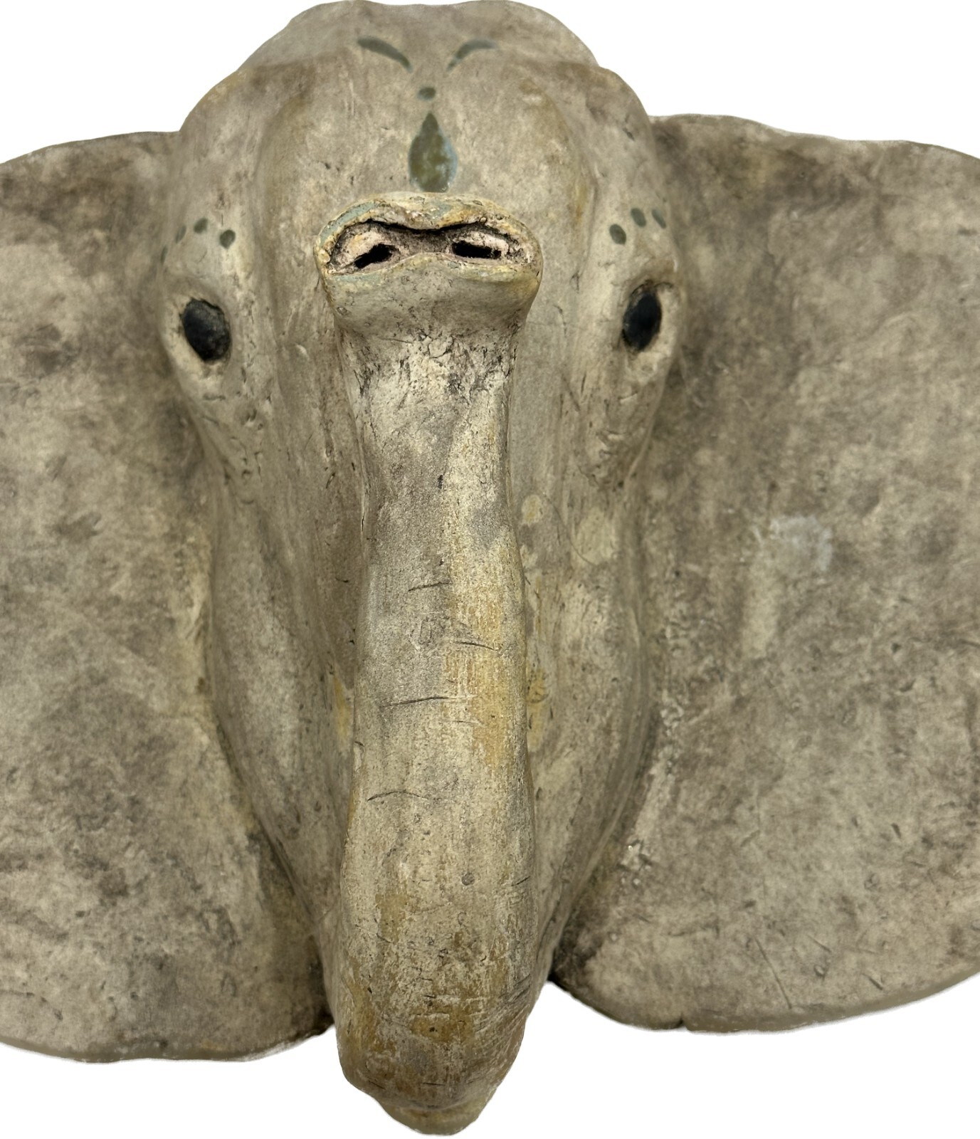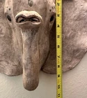 Vintage Gray Elephant Head Handcrafted Concrete Wall Hanging Sculpture 10" Tall Vintage realistic gray elephant head wall sculpture. Handcrafted from durable clay or concrete. Impressive 10 inches in height and weighs Apx 6 lbs! Unique and eye-catching design with detailed features such as textured skin and tusks. Adds a touch of exotic, rustic charm to any space. Perfect for animal lovers and collectors. Timeless piece with a distinct vintage appeal. Approximate Measurements Length: 15" Height: 10" Weight: 6 lbs Take a look at the actual photos as they are part of our description.