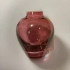 Vintage Red Glass Bud Vase. This vase is made of glass and features a vibrant red color. It is designed in a bud shape, perfect for displaying a single flower or small bouquet. A beautiful collectible item that adds a decorative touch to any space.