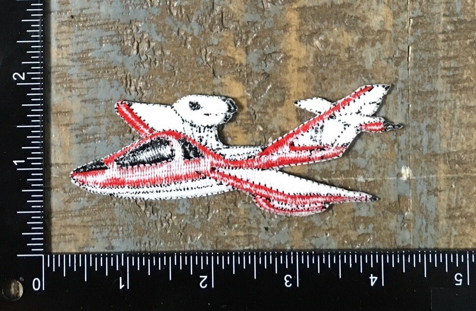 Vintage Red/White Airplane Embroidered Iron-On Aviation Patch