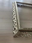 Vintage Regency Gold Tone Metal Filigree Picture Frame Holds 5"x7" Photo Ornate Please see photos. Does not lay flat.