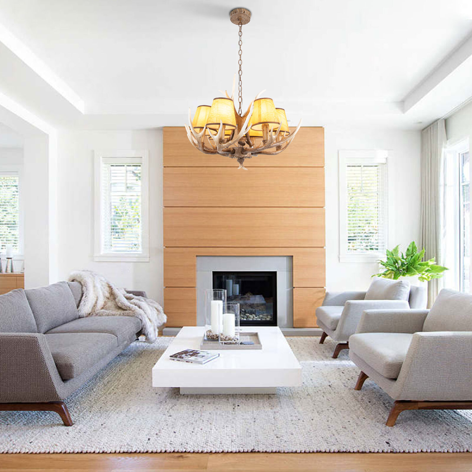 Specifications Model: 1055 Style: Vintage Voltage: 110V Color: Brown Efficiency: E Material: Resin, Iron, and PVC Light Fixture Form: Chandelier Surface Treatment: Paint Spraying Installation Method: Surface Mounted Indoor/Outdoor Usage: Indoor Assembly Required: Yes Mount Type: Ceiling Mount Light Source Type: Edison Bulbs, LED, and Incandescent Single Bulb Power: 40-60W Lighting Range: Universal 5㎡ -10㎡/ 53.8ft²-107.6ft² Light Source: 6* E12 Bulbs (Not Included) Product Size(D*H): 68*47cm / 26.77*18.5in Chain Length: 50cm / 19.68in Suction Ceiling Diameter: 12cm / 4.72in Package Included 1*Antler Chandelier 1*Adjustable Chain 1* English Manual All Accessories for Assembly Vintage Resin Antler Chandelier 6Head Ceiling Mount Lamp Deer Horn Pendant Light Vintage Resin Antler Chandelier 6head Ceiling Mount Lamp Deer Horn Pendant Light Description This Chandelier Can Meet Your Lighting Needs As Well As Your Decorative Needs, Bringing Fun to Your Life. the Antlers Look Very Realistic with Gradient Color Treatment and Handcrafted Antique Process. the Matching Brown Lampshade Also Has a Rustic Vintage Feel. the Adjustable Chain Ensures Changeable Height of the Chandelier According to Your Needs. This Chandelier Can Fit in Multiple Scenes like Your Study, Bedroom, Living Room, Dining Room, Etc. Come and Bring It Home to Add a Flair to Your Decor! Key Features Beautiful Shape: Two Different Designs of Antlers Regularly Surround Each Other to Create a Natural Atmosphere. at the Same Time, the Chandelier Made of Nine Deer Antlers Combined with a Brown Lampshade Can Bring a Sense of Luxury to Your Room and Enhance Its Retro Style. Simulated Antlers: the Resin Material Gives It a More Textured Look, and Each Antler Is Hand Antiqued to Make It More Lifelike and Let You Feel the Beauty of the Animal World . Adjustable Chain: the Length of the Chain Is 19.68 Inches, and It Can Be Adjusted at Any Time According to Your Preferences and Needs Through the Opening on the Chain to Meet Different Ceiling Heights. Versatile Style: Featuring an Exquisite Antler Design with Unified Tones and Timeless Texture, This Chandelier Is Full of Retro Style and Is Ideal for Various Scenarios . by Putting the Vintage Large Chandelier in a Place of Your Choice, You Can Create Beautiful Decorative Lights for the Living Room, bar, Dining Room, Cafe, and so on. High Quality : the Chandelier Is Composed of Selected Resin , Lacquer-finished Iron, and Fine Pvc Shades. These Materials Ensure That the Chandelier Is Sturdy and Easy to Clean. It Will Remain Solid and Beautiful for Years of Use. Diy Fun : the Package Comes with Complete Accessories. We Provide Detailed Instructions to Help You Install the Antler Light Fixtures Quickly and Easily. Feel the Sense of Achievement from Component to Assembly! Standard E12 Lamp Holder: This Chandelier Adopts an E12 Spiral Lamp Holder, Which Is Safe and Practical. It Is Suitable for Edison Bulbs, Incandescent Bulbs, and Led Bulbs, so You Can Easily Replace Your Favorite Bulbs . Good Lighting : the Design of the Six-headed Bulb Allows the Light Source to Be Better Emitted for Your Space Within 53.8ft²-107.6ft², Which Is Enough to Meet Your Daily Lighting Needs. Details Rounded Corners: All the Antler Tips on the Chandelier Have Been Done by a Rounding Process to Ensure Both the Beauty of the Antlers and Your Safety During Installation and Use. Patterned Lampshade: the Lampshade Has Unique a Pattern on It, Adding a Sense of Sophistication to the Chandelier, and It Is Random and Uncluttered, Allowing You to Appreciate the Beauty of the Details. Stable Base: 4.72 Inches Diameter Resin Round Base Increases the Force Area, the Round and Linear Combination of the Lamp Body Can Ensure That the Product Is Fixed Firmly and Improve the Safety of Use. Application This Chandelier Not Only Matches a Variety of Home Styles but Also Brings Flair to the Decor and Makes Your Home Stand out. Its Lighting Range Can Reach 53.8ft²-107.6ft². You Can Use It to Decorate Various Parts of Your Home, Read, Create, Play, and Gather with Your Family Under This Chandelier. Specifications Model: 1055 Style: Vintage Voltage: 110v Color: Brown Efficiency: E Material: Resin , Iron, and Pvc Light Fixture Form: Chandelier Surface Treatment: Paint Spraying Installation Method: Surface Mounted Indoor/Outdoor Usage: Indoor Assembly Required: Yes Mount Type: Ceiling Mount Light Source Type: Edison Bulbs, Led, and Incandescent Single Bulb Power: 40-60w Lighting Range: Universal 5㎡ -10㎡/ 53.8ft²-107.6ft² Light Source: 6* E12 Bulbs (Not Included) Product Size(D*H): 68*47cm / 26.77*18.5in Chain Length: 50cm / 19.68in Suction Ceiling Diameter: 12cm / 4.72in Package Included 1*Antler Chandelier 1*Adjustable Chain 1* English Manual All Accessories for Assembly Notes Luminaire Brightness, Is Subjective, Generally Depending on the Light Source Wattage. Luminaires Are Shipped Without the Light Sources, Please Confirm That You Can Accept This Before Purchasing. Please Notice That the Product Is Delivered in Bulk, You Need to Do the Assembly Yourself. Please Cut off the Electric Power Before Installing or Cleaning the Pendant Light. and We Recommend That the Chandelier Be Installed by a Professional. When Using Dimmable Bulbs and Dimmable Switches, This Product Can Be Dimmed (Note: Bulbs and Switches Are Not Included and a Dimmer Is Required ). Please Allow the Slight Color Difference Caused by the Shooting Light and 1-3cm Error Due to Manual Measurement, and Make Sure You Do Not Mind Before You Order. Payment Delivery details Terms of sales About us Contact us Payment We accept ebay payment 。 Fees such as import duties, taxes are not included in the item price or shipping costs. These charges are the buyer's responsibility. Delivery details Shipping: 2-9 working days to: USA Terms of sales We maintain high standards of excellence and strive for hundred percent customer satisfaction. Feedback is very important to us. We hope t