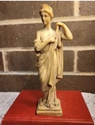 The product is a Vintage Resin Greek Goddess Sculpture, measuring 9.5 inches. It is a sculpture made of resin material, depicting a Greek goddess.