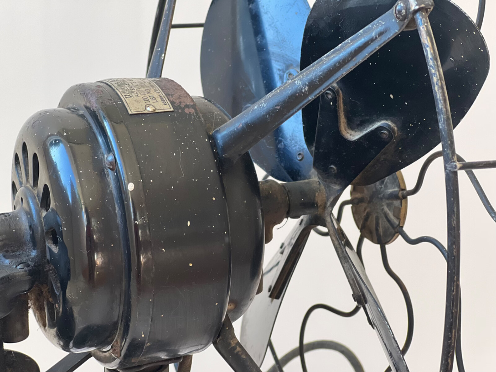 Working Fan. This fan needs restoration, and the cord should be replaced before use. The oscillation function is operating properly. Please refer to the pictures for more details and feel free to message me with any questions. Dimensions: Approximately 18 inches wide x 12 inches high Model: 5204 Make: R&M
