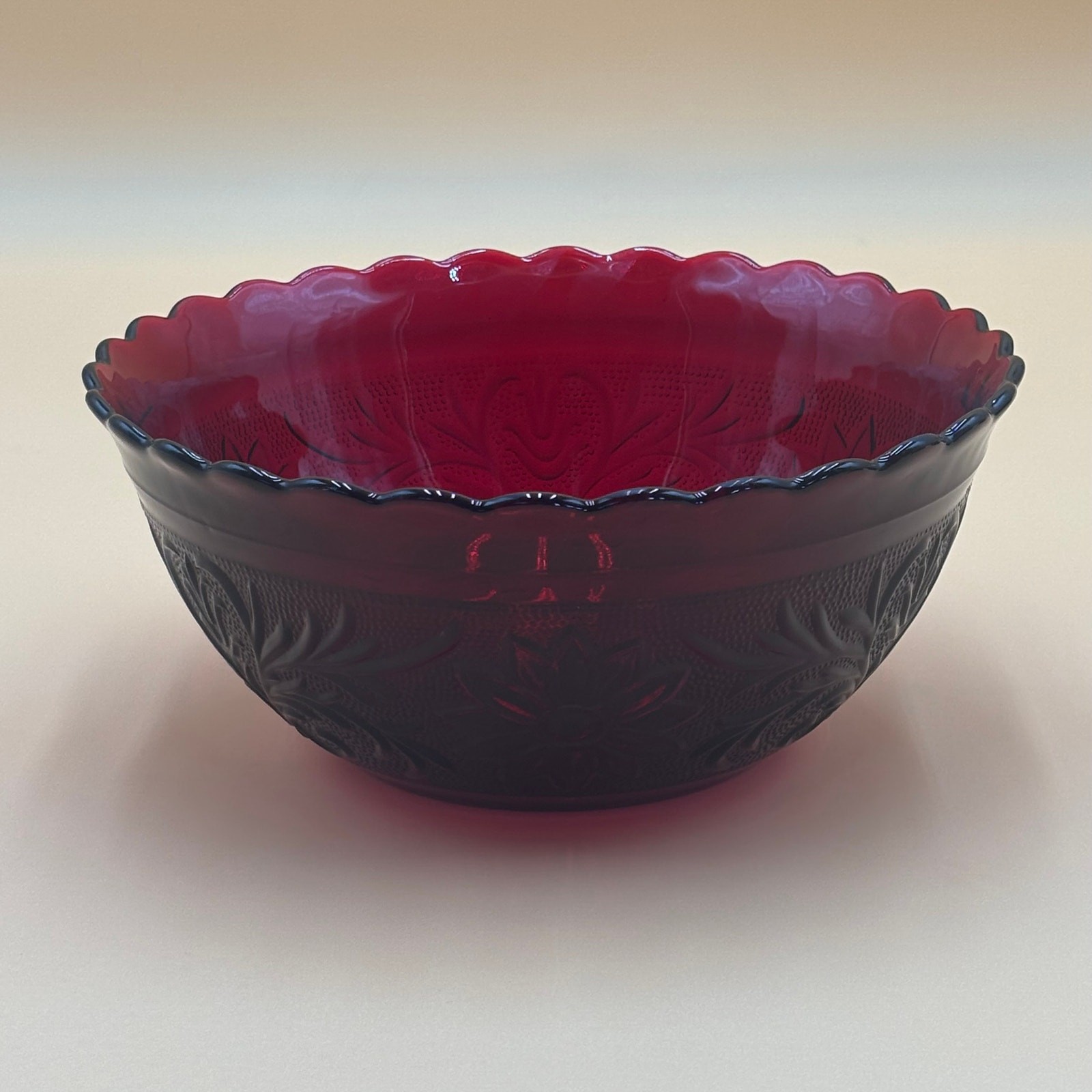 π¦ Vintage Royal Ruby Red 8" Depression Glass Sandwich Bowl, Anchor Hocking βοΈ DETAILS: Beautiful Royal Ruby red 8" depression glass serving bowl by Anchor Hocking, circa 1939-1940. Features the classic Sandwich pattern with detailed daisy flowers and scrolling leaf designs on hobnail textured background. Elegant scalloped edge adds vintage charm. This depression era glass piece shows the characteristic mold line in the bottom interior common to vintage pressed glass. π MEASUREMENTS: 8 inches diameter x 4 inches tall β¨ CONDITION: Good vintage condition. Please check photos carefully. Contact with any questions before purchase. π SHIPPING & RETURNS: β’ Free shipping continental US β’ 7-day returns (buyer pays return shipping) β’ Contact with any concerns! We're adding new treasures regularly! Follow our shop to see our latest unique finds. Thank you for shopping with Vintage 2 Trendy!