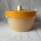 Add some retro flair to your kitchen with this vintage Hoan salad spinner. The large, 10 inch diameter strainer is perfect for drying your favorite greens, and the bright orange color adds a pop of fun to your countertop. Made of durable plastic, this salad spinner is easy to clean and can handle even the toughest salads.