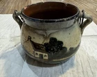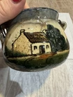 Vintage Small Hanging Planter With House Scene Pottery