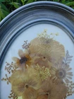 Vintage Small Pressed Dried Dry Flower Art On White Oval Frame Pansy Daisy MCM
