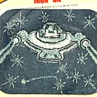 Vintage Space Ship Rainbow Novelty Embroidered Iron On Patch Sealed Vintage and still in its sealed packaging - unopened Very good condition Approximately 3.5" X 3" Iron on patch - directions on back Denim blue background with embroidered blue and white space ship and stars Thank you for looking at this vintage listing from Magpie Revibe !