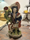This vintage Staffordshire spill vase figurine is a stunning piece of art featuring a Highlander Hunter, his rifle, and his loyal hunting dog. Made of high-quality ceramic material, this medium-sized vase is handcrafted with Old English style and a glossy finish, making it a perfect addition to any collection or decorative display. The multicolor design and intricate details of this antique match holder/spill vase are sure to impress any art enthusiast. To keep it clean and well-maintained, simply use a damp cloth. This unique piece is ideal for collectors who appreciate hunting and hunting dog themes.
