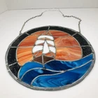 Add a touch of vintage charm to your home decor with this beautiful stained glass sailboat window hanging panel suncatcher. The intricate floral pattern and colorful design make it a perfect addition to any room that needs a little bit of nature and art. Crafted by hand in the late 20th century, this unmarked suncatcher features a framed, ready-to-hang design and is made of high-quality glass. Its nautical and ocean-themed elements, including ships and boats, sea life, and the ocean itself, make it a perfect addition to any home that loves the sea. Don't miss out on this unique and decorative piece that is sure to add beauty and character to your home.