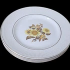 This beautiful set of four vintage Royal Warwick dinner plates features a stunning sunflower pattern on a round porcelain plate. Made in England in the late 20th century, these plates are perfect for any occasion, and add a touch of vintage charm to your table setting. Measuring 10 inches in diameter, these plates are ideal for serving your favorite meals. Hand wash only to preserve the vintage character..