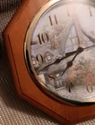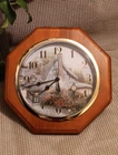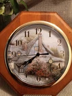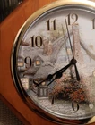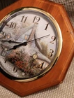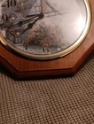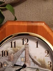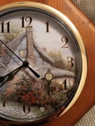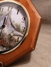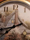 This vintage Thomas Kinkade wall clock features a beautiful maple finish and depicts a quaint cottage garden scene. The clock is made of wood and powered by a battery, with a silent/no ticking feature to ensure a peaceful environment. It has a hexagonal shape and measures 10" x 10" x 1". The clock's movement is powered by a quartz battery, and it has a Westminster chime sequence. This wall clock is a great addition to any room and has a Victorian style. It is a collectible item that will add charm to your home decor. The clock is made in China and has a late 20th century era. The display type is analog, and the clock's features include being battery-operated and having a beautiful garden theme. PLEASE LOOK AT PICS TO SEE WEAR AND TEAR ON ITEM WORKS GREAT! SMALL CRACK IN WOOD DIRECTLY UDER THE NUMBER 5, SHOWN IN PICS, EASY FIX Clock only. Other items are prop display