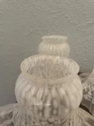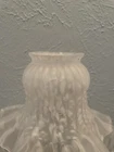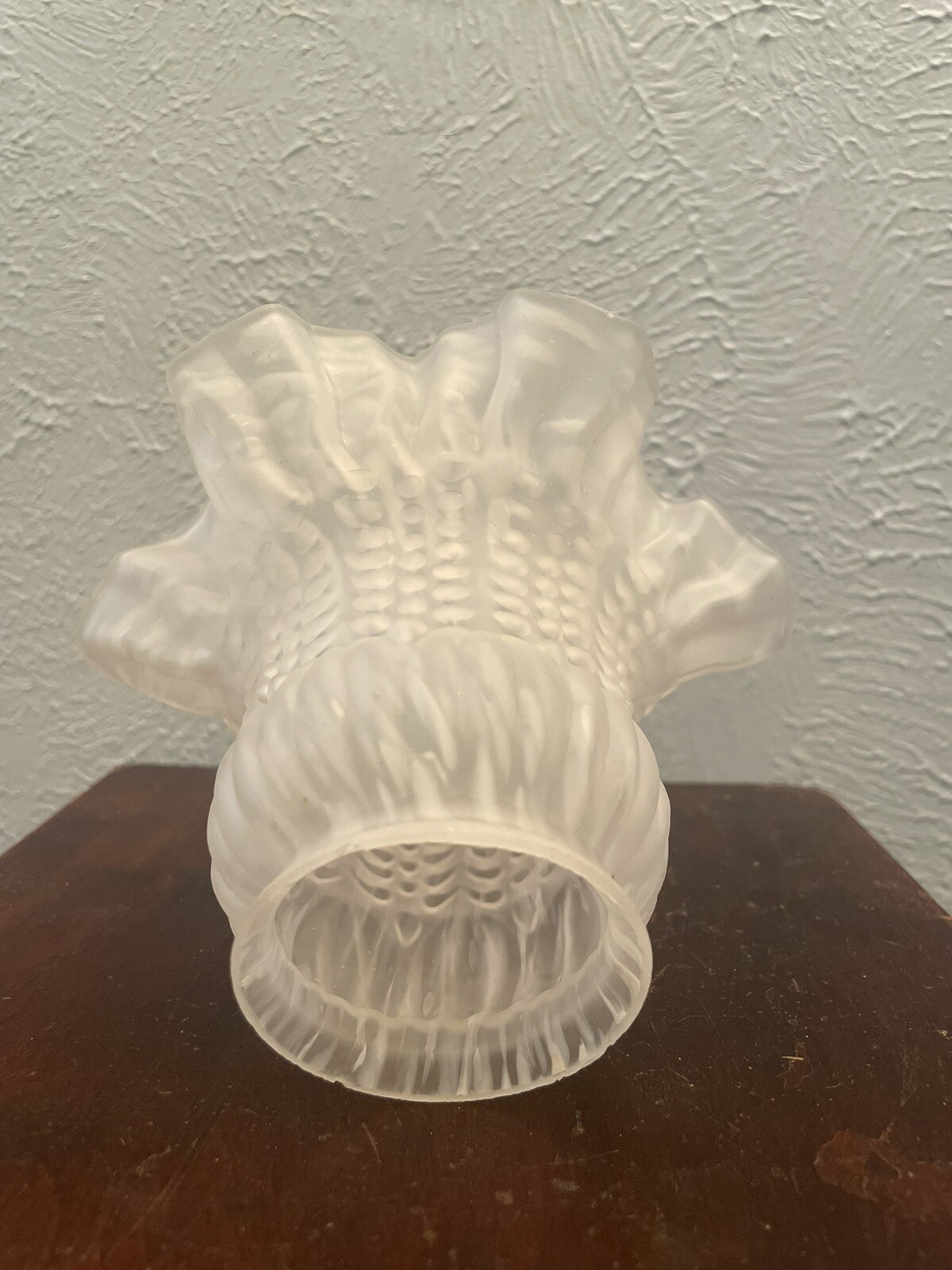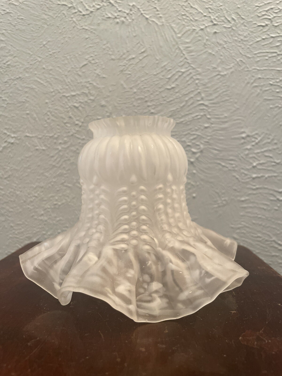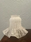 Add a vintage touch to your ceiling lamp or fan with this beautiful frosted glass shade. The tulip shape and ruffled pattern create a romantic and traditional style that will complement any room. Measuring 4 inches in diameter and 4 inches in height, this shade has a 2-inch fitter and is compatible with most ceiling fans and light fixtures. Crafted with high-quality glass, this original piece from the 80s/90s will add charm and elegance to your home décor. The shade is in excellent condition and is perfect for adults who love vintage items. Whether you are redecorating your home or looking for a unique gift, this ceiling fan/light shade is a must-have. 4 pieces set imperfections pictured
