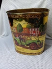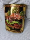 Vintage Weibro Metal Trash Can with Old Jalopy / Antique Car Images. Approx 13" X 10,5" X 7". Some minor surface rust in bottom of can, A few dings and dents, nothing major. See Pictures. Nice Bright color. Has been properly cleaned.