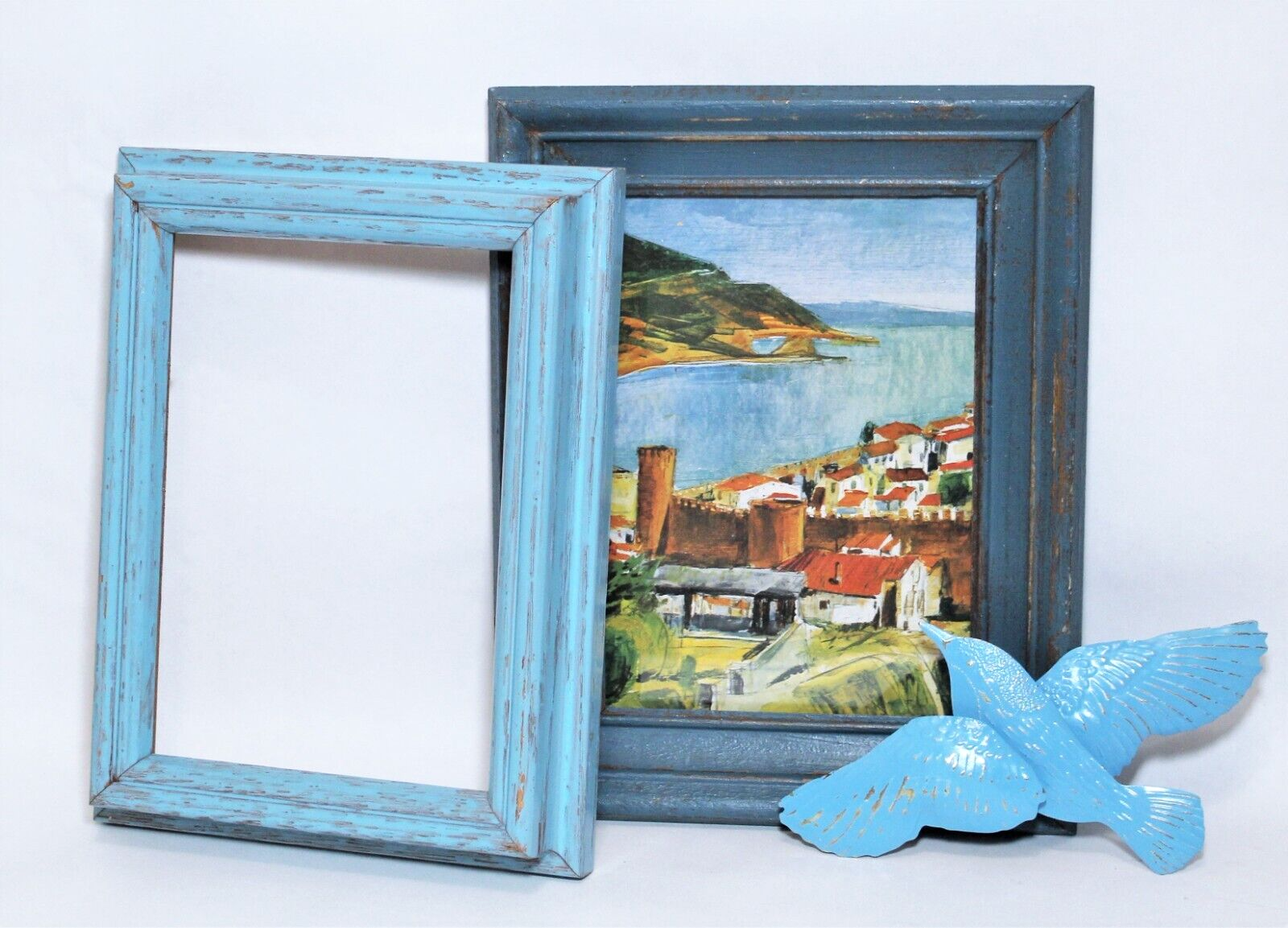 These vintage frames are absolutely charming! The mix of aqua, blue, and green adds a lovely pop of color, and the distressed wood gives them so much character. The little blue bird is such a cute touch—perfect for creating a cozy gallery wall. Great quality and unique style!