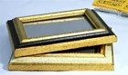 Set of 2.......Wood Picture Frames / Wall Hanging / Gold & Black ....6 1/2" x 5" (view=5"X4") / Under Glass / with Hanger Packet............Please email with questions .....I will combine shipping if possible.....Thanks!!!