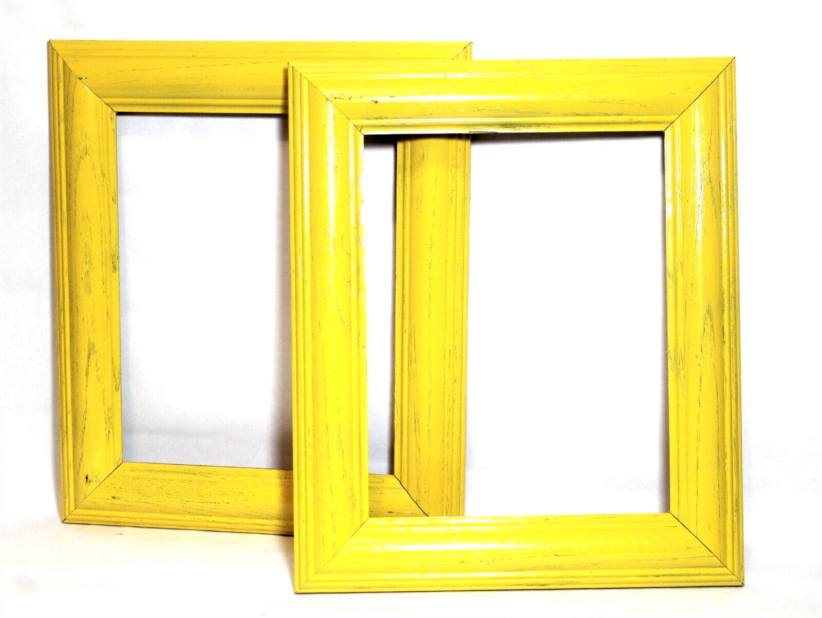 Set of 2.....Vintage Picture Frames / Wood - Solid Oak / Painted Yellow .............13 1/4" x 11 1/4" (view=10" X 8") ..................Thank You!!!