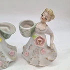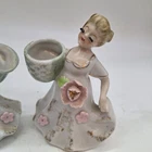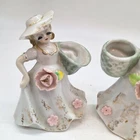 Charming pair of vintage Chase porcelain figurines, featuring iconic eyelash girls. These ceramic vases depict girls holding baskets with flowers adorning their dresses, perfect for adding a whimsical touch to any decor. Each stands 5.5" tall, ideal for small floral arrangements or as a standalone display piece. • Vintage Chase figurines • Features eyelash girls design • Ceramic material • Each vase is 5.5" tall • Ideal for decor or flowers • Whimsical and charming design • Perfect for collectors Size: 5.5" Condition: Pre-Owned Good No chips or cracks, one has original paper la el Thank you for shopping with Gardenspire. All items are carefully packaged for maximum protection during shipping. We ship on Mondays, Wednesdays and Fridays. We had select all of our items from a variety of sources. While our home is smoke free, we cannot guarantee that these items originated from a smoke free environment. We do our best to inspect each item and to accurately describe any and all blemishes. However, we are human and we sometimes make mistakes. Please do reach out to us if you are unsatisfied with your purchase so we can work with you to make it right. We offer 30 day refunds. Please check out our store for more great items.