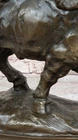 Condition : This sculpture is in perfect condition. Bronze Dimensions with Marble Base:11" X 17" Marble Dimensions: Diameter 13.5" Height without base:10" Weight:27 LBS Inventory:2497K08442 Capturing the raw power and unpredictable temperament of a charging bison, this sculpture vividly depicts the intensity of the moment. Bison, typically known for their peaceful and lazy demeanor, can transform into formidable forces, capable of charging at speeds up to thirty-five miles per hour. The sculpture portrays the bison in mid-charge, showcasing its massive skull and distinctive horns, emphasizing the potential danger inherent in its sudden and unpredictable behavior. The intricate detailing, including the large curled horns, brings the sculpture to life, conveying the strength and ferocity of this iconic North American mammal. The bison's natural weapons, from its horns to its massive head, are skillfully portrayed in this fully detailed sculpture. The artist highlights the potential for a bison to use its head as a battering ram, harnessing the momentum of its substantial weight at high speeds. The hind legs, capable of delivering devastating force, add to the sculpture's dynamic representation of the bison's power. The brown patina, enhanced with subtle gold touches, adds depth and realism to the artwork, capturing the essence of this majestic creature in a moment of intense action. Crafted with precision and artistry, this sculpture is a product of the "Lost Wax Method," a technique that allows for intricate details and lifelike representations. Mounted on a round black marble base, the sculpture gains a sense of grounding, emphasizing its significance as a work of art. Signed by the artist Milo, this piece not only pays homage to the strength and vitality of the bison but also serves as a testament to the artist's skill in capturing the essence of wildlife in bronze. RUNNING BISON CHARGES BRONZE MARBLE SCULPTURE MILO HOT CAST MARBLE BASE FIGURINE Video will open in a new window Using the eBay App? Paste link into a browser window: [isdntekvideo]