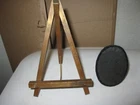 2 vintage small picture mounting items oval has stand on back black fabric picture would probably glue or be put on front measures 3.5 in x 2.5 in & 1 easel style wood standing see pictures for size Free Domestic Shipping.