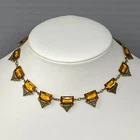 Vtg Art Deco Necklace Yellow Czech Glass Emerald Cut Rhinestones Fringe Choker Sizes are approximate and may vary slightly Items may be tested with the Presidium Gem Tester and/or acid tested to ensure accuracy of stones & precious metals Most jewelry ships in Jewelry Gift Box (if it fits) for easy gift giving. We make a trip to the Post Office DAILY (M-Sat) so you can expect QUICK DELIVERY BUY MORE SAVE MORE COMBINED SHIPPING: We offer combined shipping on multiple jewelry items in the same order. If shipping is not adjusted at checkout, please contact us. We list new items daily Please follow our store and check back often