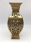 Vintage Brass Vase Filigree Design Heavy 11” India Boho Hollywood Regency. Condition is pre owned. Shipped USPS Ground Advantage. • Measures approximately 11” T x 4.25” W • Has light wear consistent with age, please see all photos