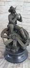 Vtg Bronze Copper Equestrian Cowboy Horse Tobacco Smoking Pipe Holder Statue Vtg Bronze Copper Equestrian Cowboy Horse Tobacco Smoking Pipe Holder Statue Condition: This sculpture is in perfect condition Bronze Dimensions with Marble Base: Height 17" X Width 10" Marble Dimensions: Diameter 9" Height without base:14" Weight:31 LBS Inventory:24YRD115712042 Capture the essence of the Wild West with our exquisite bronze sculpture titled "Lonely Cowboy." Handcrafted with precision and skill, this remarkable artwork portrays a cowboy sitting and daydreaming as he leisurely lights his pipe. The attention to detail in this piece, marked with the artist's name Fisher, brings the cowboy's character to life, evoking a sense of solitude and reflection. Molded using the ancient lost-wax casting method, the sculpture exudes authenticity and artistry, preserving the fine nuances of the cowboy's posture and expression. Enhanced with a brown patina finish, the artwork adds depth and richness, ensuring its lasting beauty and preservation for generations to come. Mounted gracefully on a sleek black marble base, this handcrafted bronze sculpture bears the signature of the artist Fisher, a symbol of its genuine artistry and craftsmanship. Whether displayed in a western-themed collection or as a centerpiece in your home, "Lonely Cowboy" is a timeless tribute to the spirit of the frontier and the enduring legacy of the Wild West. A captivating addition for collectors and enthusiasts alike, celebrating the mystique and allure of the cowboy way of life. Shipping Terms : Most of our items are shipped via USPS (United States Postal Service) mail or UPS. Most orders are shipped within 24-48 hours of purchase. Please be aware that not all items are available for USPS shipping due to size and weight. We do ship to Hawaii, Alaska, Canada, Puerto Rico, APO/AE, and U.S. Virgin Islands, however, an additional charge may be required. Please contact us before making any purchases in these areas. For Non-USA customers, you may be responsible for all duty, tax, brokerage fees that may be due upon delivery (shipping costs cover freight charges only). We also ship internationally. Please refer to the "Shipping and Handling" chart for the rates for each area. Payment : We accept just about any form of payment. PayPal, Master Card, Visa or American Express credit cards. Money orders, cashiers checks, and even personal or business checks. For governmental institutions, we will also accept a purchase order. Please understand that for personal or business checks we have to wait for the check to clear (usually 7 days) before shipping. Condition : New Detailed Hand Crafted Hot Cast Bronze Satisfaction Guaranteed. This is Stock Photo, Slight Color Variation!! Listing and template services provided by inkFrog