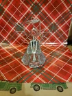 Celebrate the holiday season with this vintage clear stainless glass angel Christmas ornament. Crafted in the Arts & Crafts Movement style, this handmade ornament features a playful horn and is perfect for any angel enthusiast. Measuring 4 inches in height and 3 inches in width, this small ornament is sure to bring joy to any Christmas tree. The ornament is made of fused glass and showcases a beautiful all-over pattern. The clear color and intricate design make it a perfect addition to any ornament collection. This piece is ideal for those who love angels and are looking for a unique ornament to cherish.