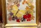 Vtg Dried Flowers & Real Butterfly Wall Art Arrangement Gold Frame Signed. This is a gorgeous original arrangement by M. Leffler. Using a variety of dried pressed flowers & foliage and a yellow taxidermy butterfly, a multi-layered, 3-D look is created and encased in a thick wooden gold frame. Overall size: 7 1/8” x 9 1/8” width x 1 1/4” depth. Opening: 6.5” x 4.5”.