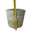 The product is a vintage flower vase with a frog toothbrush holder from Better Homes & Gardens Home Interiors. It features a floral pattern, green color, and serves as a decorative collectible item.