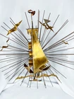 Signed:YesUPC:Does not applyYear of Production:1978Theme:Art, NatureTime Period Produced:1970-1979Type:SculptureSubject:Ships, SunburstHandmade:YesFormat:Wall ArtMaterial:MetalPeriod:Post-War (1940-1970)gtin13:Does not applyStyle:ModernismCountry/Region of Manufacture:United StatesArtist:UnknownItem Length:30 inSize:LargeItem Width:9 inOriginal/Licensed Reproduction:OriginalItem Height:30 inProduction Technique:Metalwork