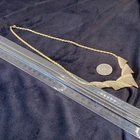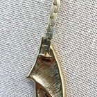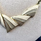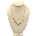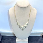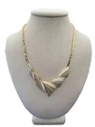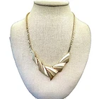Occasion: Anniversary, Birthday, Christening, Christmas, Confirmation/Communion, Engagement, Father's Day, Graduation, Mother's Day, Valentine's Day, Wedding Metal: Gold tone UPC: Does not apply Color: Gold Cream Gray Green Number of Gemstones: 0 Department: Unisex Adults Pendant/Locket Type: Bar Jewelry Department: Fashion Era: Undated Material: Metal Vintage: Yes Customized: No Country/Region of Manufacture: Unknown Brand: Trifari Base Metal: Unknown Country of Origin: Unknown Closure: Spring Ring Antique: No Original/Reproduction: Original Main Stone: No Stone Theme: Art, Beauty, Family & Friends, Travel & Places Style: Chain Gemstone Clarity Grade: Eye Clean Pendant Shape: Triangle Cut Grade: Excellent Signed: Yes Handmade: No Type: Necklace Number of Diamonds: 0 gtin13: Does not apply Necklace Length: 18 in Country of Manufacture: United States