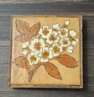 Vtg, marked on back, wood frame, no crack, & no chips. Colors of cream, tans, & browns. Poppy Seed flowers. Handmade & painted. Cute piece!