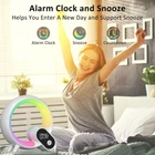 Wake Up Light CREAT YOUR OWN WAKE-UP MODE ---> You can adjust the noise, volume, lights color and brightness from APP and personalize a healthy sleep-wake routine. The Alarm Clock with snooze is gentle and peaceful to help your body wake up more gradually. GET MORE DEEP SLEEP---> This smart alarm clock provides 15 soothing sounds for sleeping, white noise, help block disruptive environmental noises so you can fall asleep with ease. Also ideal for creating a disturbance-free area. 3 Control Methods ---> This smart alarm clock Lamp with 3 control methods, Smart APP Control, Remote Control and Buttons. Supports BLUETOOTH SPEAKER connection for playing audio and video. 6 IN 1 SMART NIGHT LIGHT ---> This smart sleep alarm combines customized alarm clock, sound machine, ambient light, Bluetooth speakers and weather display. It’s widely used for sleep training, nursery sleep, insomnia, meditation, SPA, bathing, party, festival, home decor, bedside lamp, nightstand lamp and so on. AMBIENT LIGHT&MUST HAVE for Festival ---> It works through 9 different dynamic lighting effects, 16 million colors that helps you make any mood you want. It’s is a ideal gift for aesthetic room decor, birthday, Christmas, Mother’s Day, Father’s Day, New Year, Thanksgiving Day and so on.